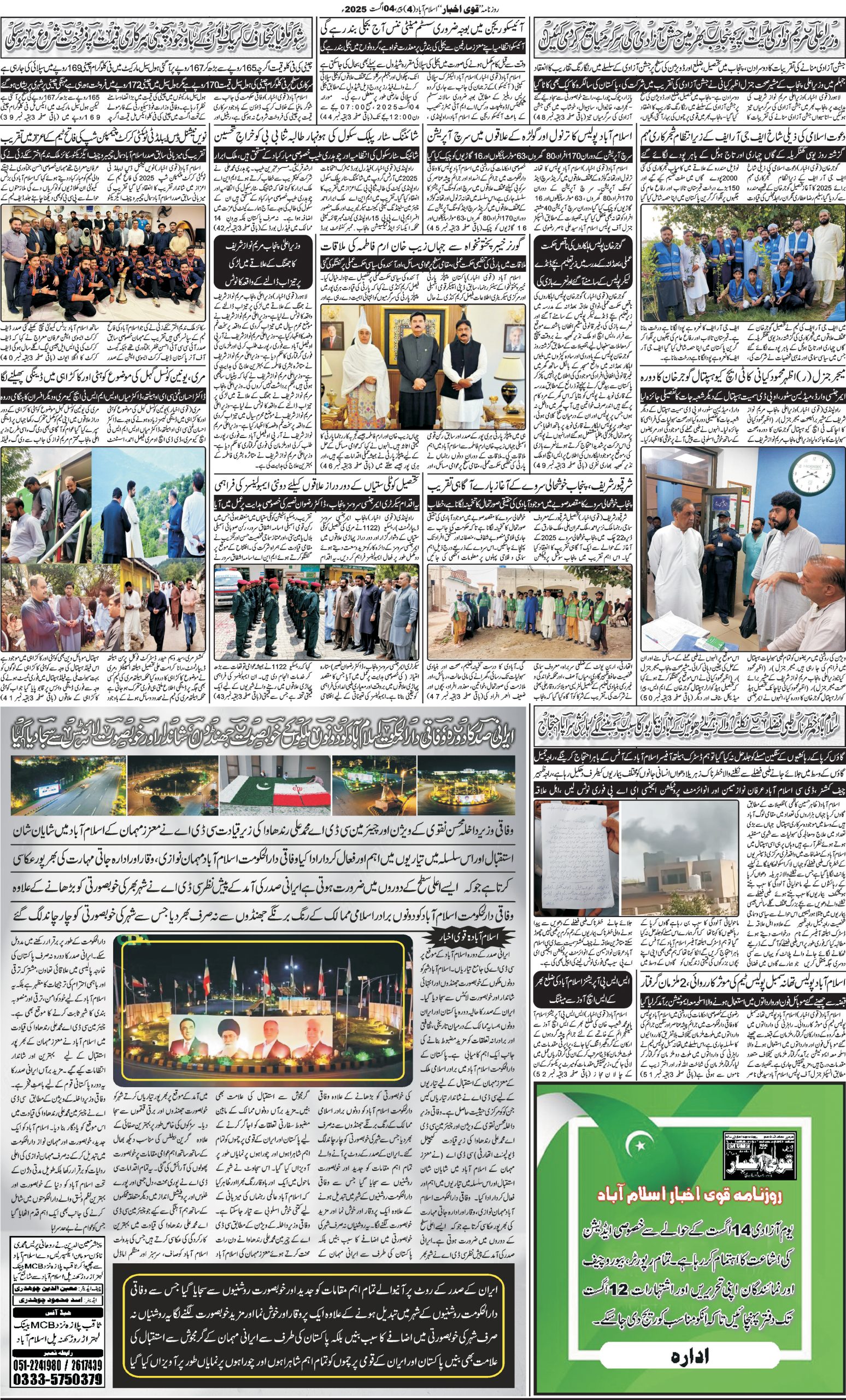 102 شیئر کریں روزنامہ قوی اخبار اسلام آباد بروز پیر مؤرخہ 4اگست2025 dailyqavi اگست 5, 2025August 5, 2025 0 تبصرے روزنامہ قوی اخبار اسلام آباد بروز پیر مورخہ4اگست2025Daily qavi Akhbar Islamabad